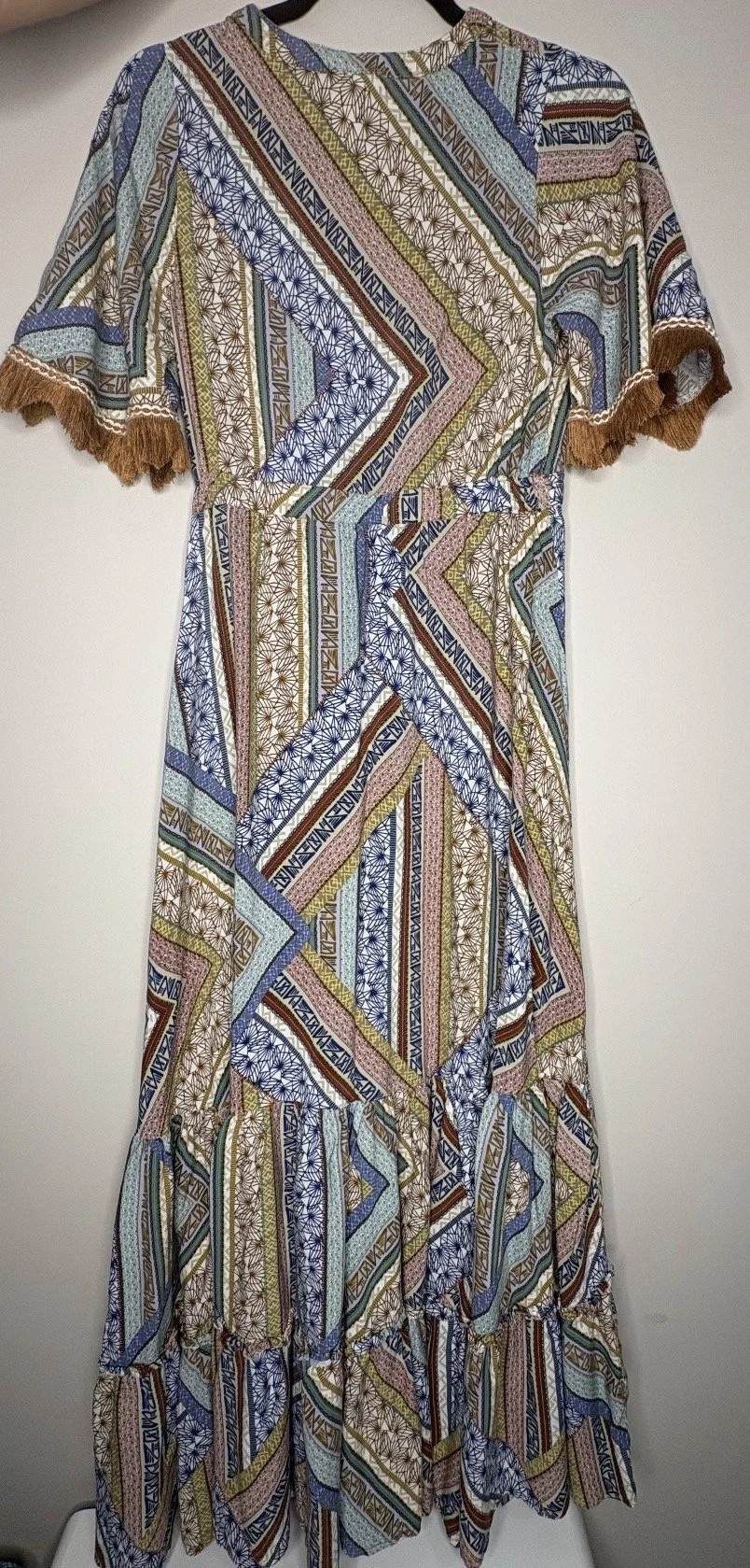 Arnhem Boho Vintage Apricot & Blue Petite Floral Dress ( Size 8)