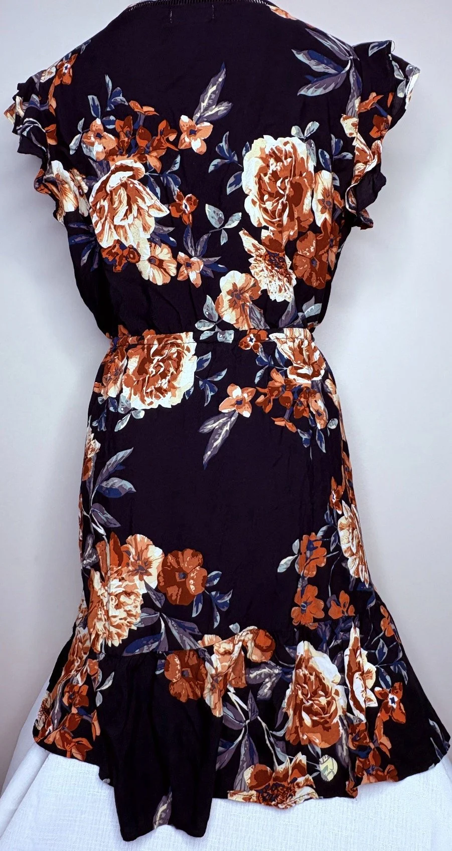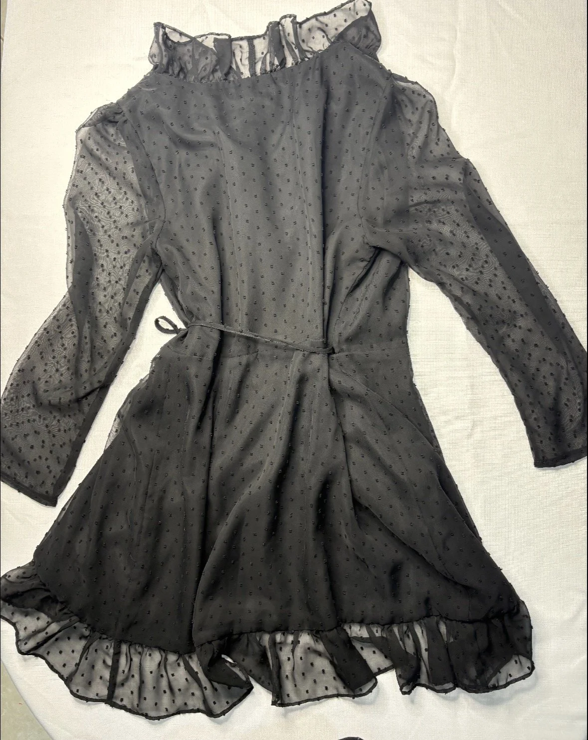 Feminine accents: Tiered ruffles at the hem and sleeve add texture and a graceful silhouette.